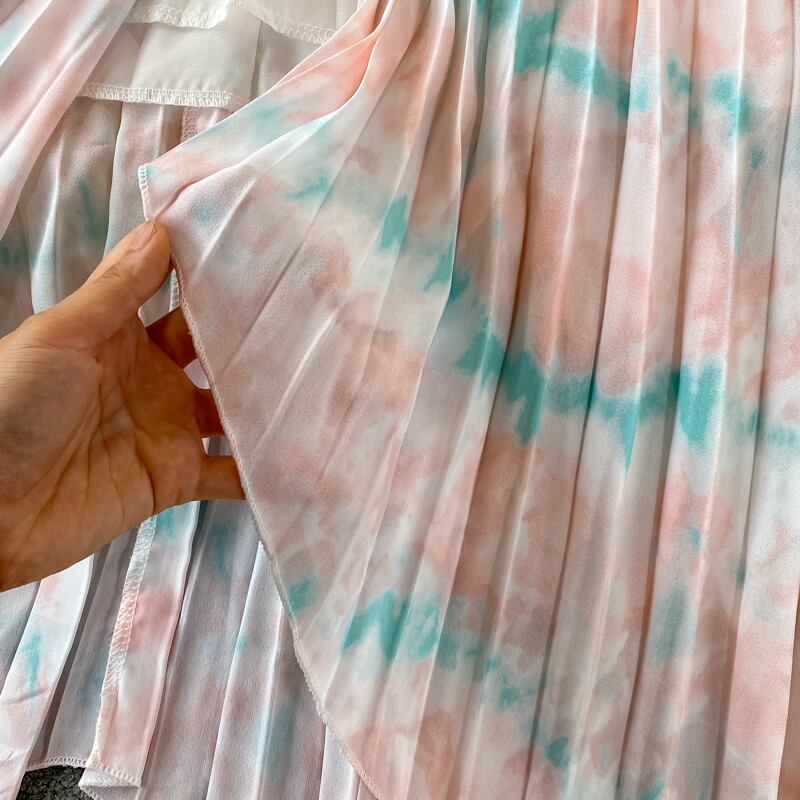 ドレス女性のセクシーな自由奔放に生きるドレスシックなスリム中空アウトスパゲッティストラップフリル不規則な絞り染めドレスプリーツビーチシフォンローブ asa6136668247