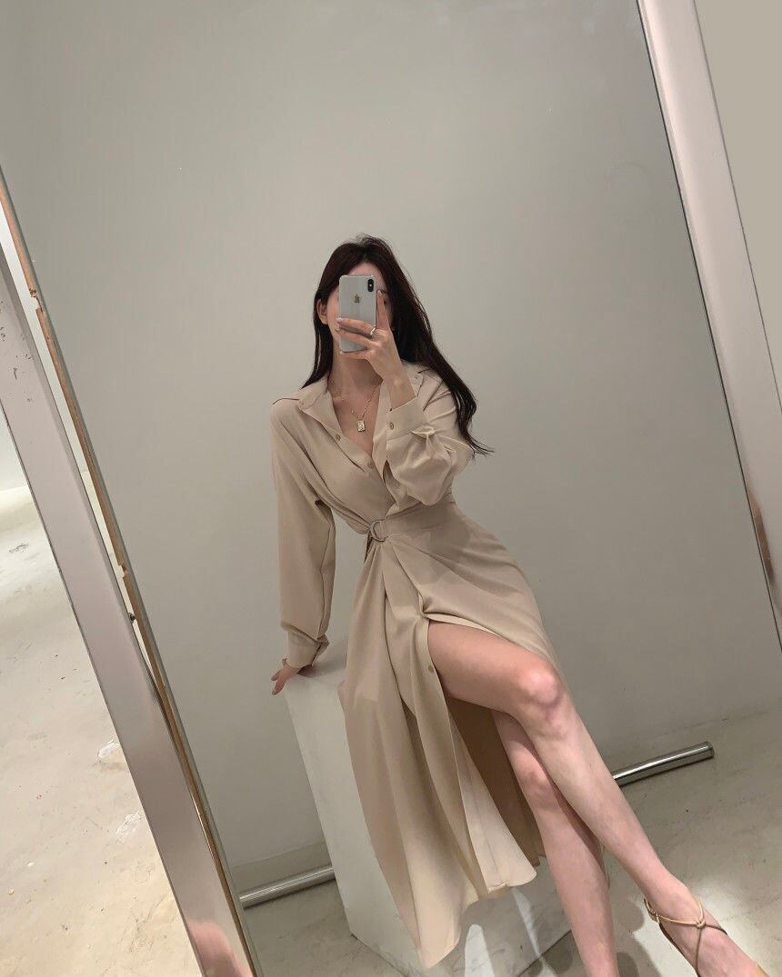 ドレス女性ラペルシングルブレストレースアップウエストロング黒シャツドレス A ラインボディコン OL ローブ Vestidos ブラック Aライン asa32632613375