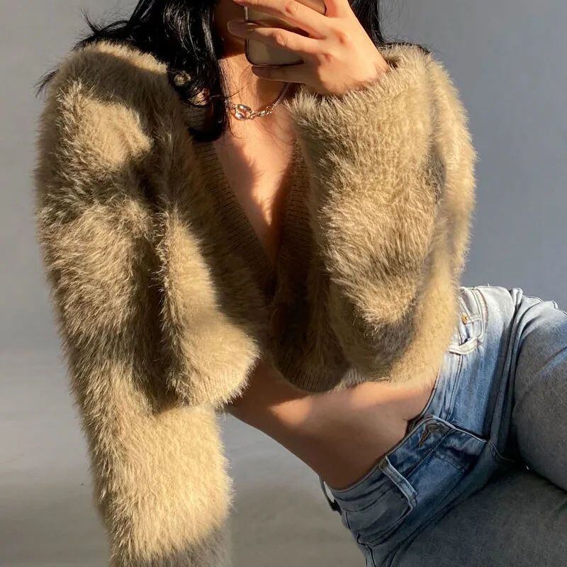 シングル ボタン セーター スリム ワイルド V ホワイト カーディガン クロップド フォール セーター セクシー ブラック ニット セーター プル セーター asa51054072265
