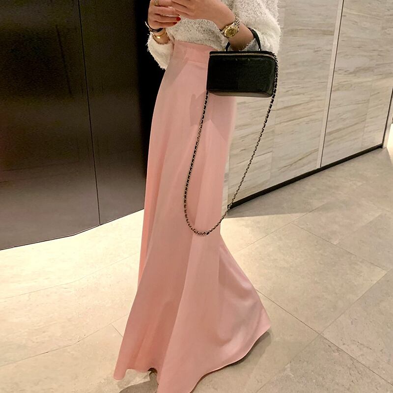 スリム a ライン ウエスト ピンク サテン スカート女性スーツ ミディ ロング Y2k 段 Faldas Largas ブラック ホワイト シフォン ラップ ヒップ オフィス レディ Aライン 会社 学校 通勤や通学にも asa99463090828
