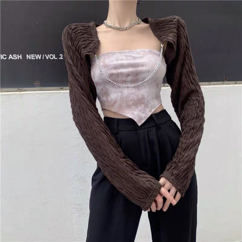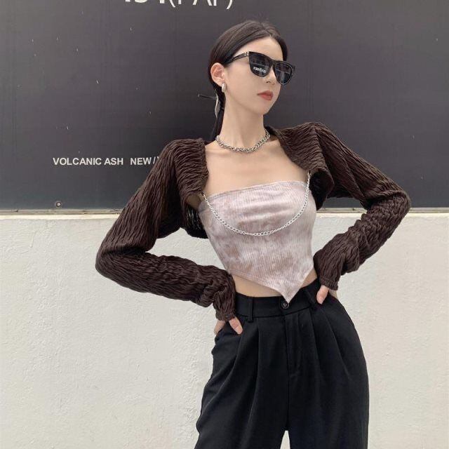 タンクタイダイキャミソールクロップトップスセクシーなストラップレスブラウスレースショール不規則な Blusa レトロシャツプルオーバー 2 ピースセットシャツ asa7103071501