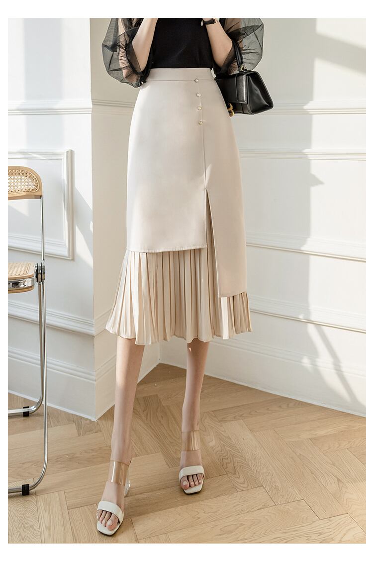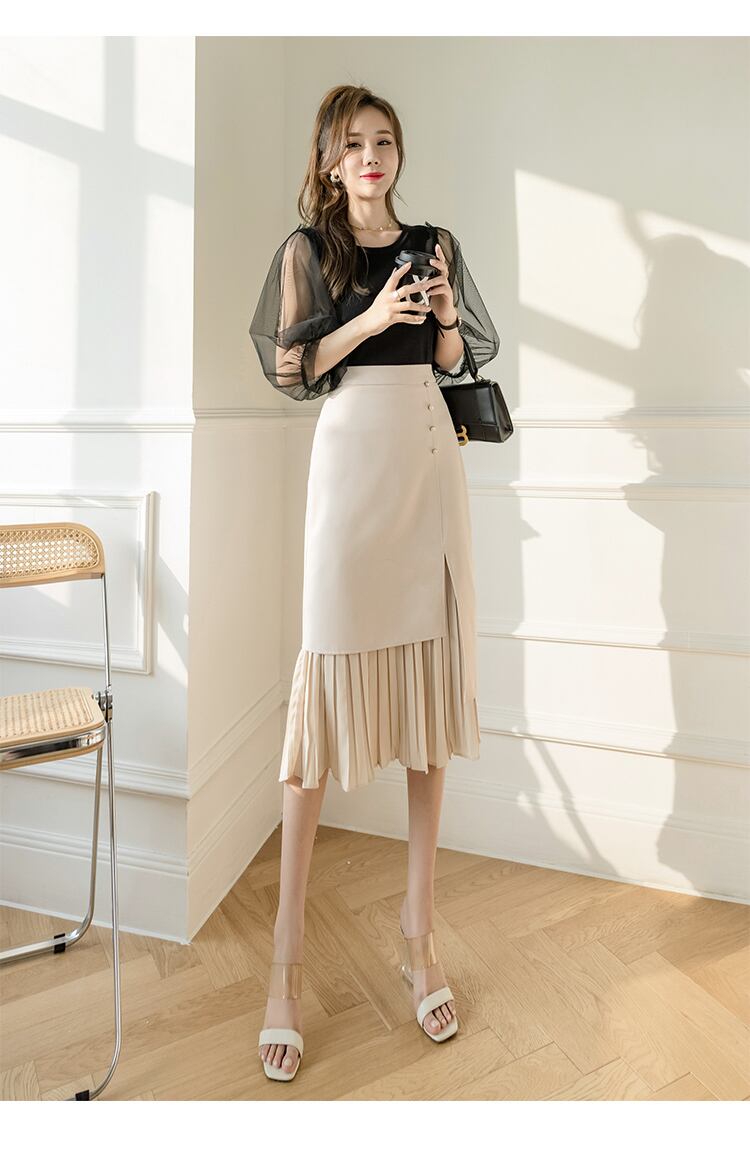 シックな気質スリムウエストパッチワーク黒不規則なプリーツスカート女性ラップヒップミディ段段 Faldas 特大固体 ブラック ソリッドカラー asa86723349723