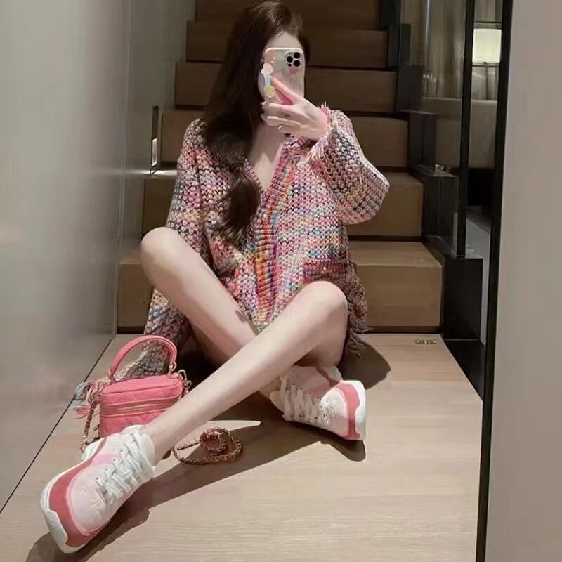 スモール フレグランス レインボー テル ニット カーディガン Vネック ツイード ジャケット シックな服 セーター レディース asa81272803137