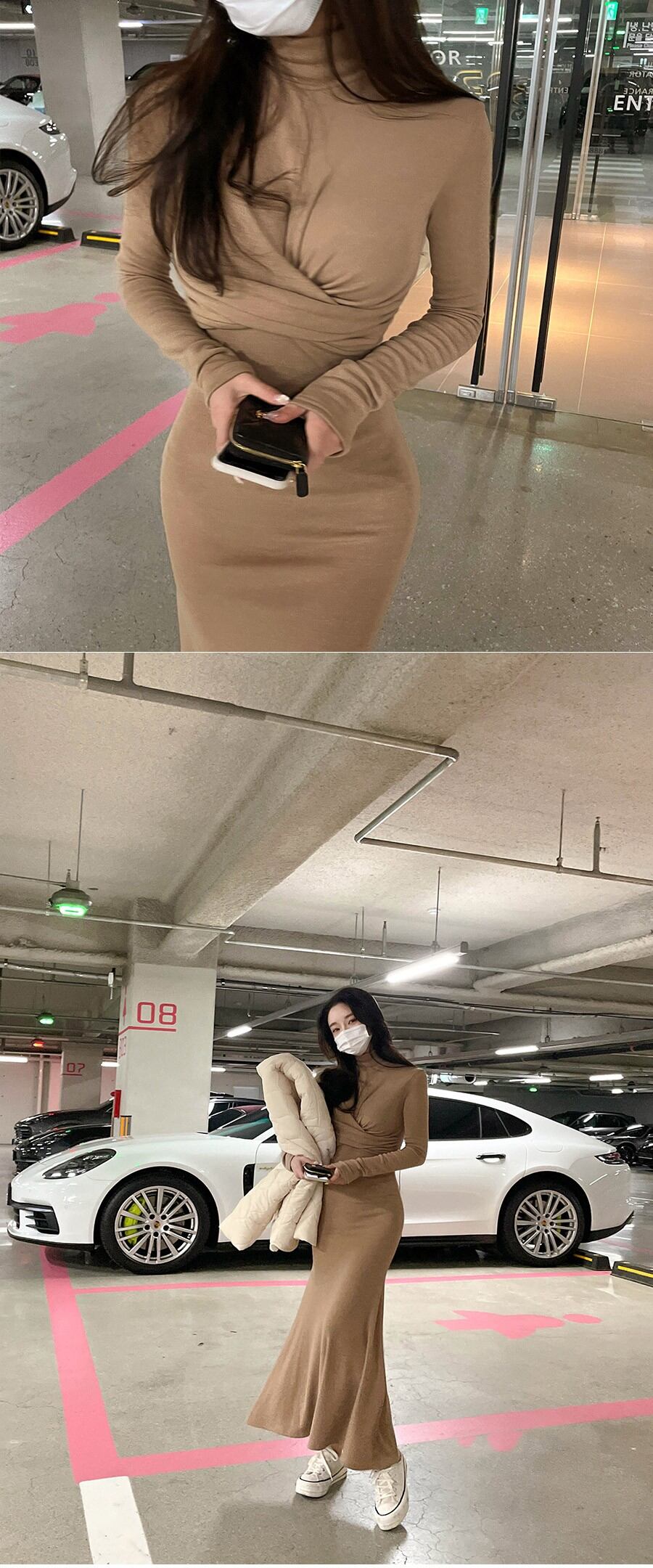 ヒップストレッチカーキハーフタートルネックマーメイドドレス女性ボディコン Vestido 野生の秋黒ニットウエストドレス ブラック オータム 秋物 asa15008521489