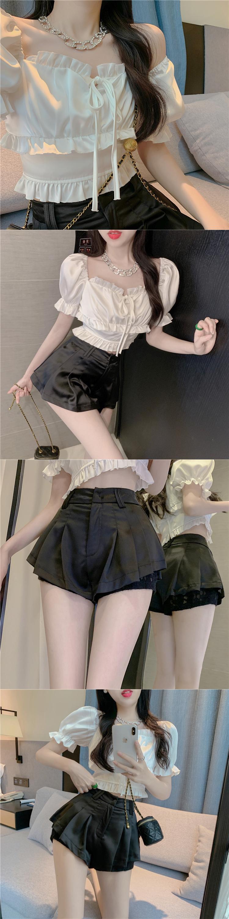 スリムセクシーなウエストホワイトレースシャツショーツファルダモーダ春スタイル Y2k スカートペチコートミニフリルワイドレッグ スプリング 春物 ブルマー ワイドパンツ asa71182921333