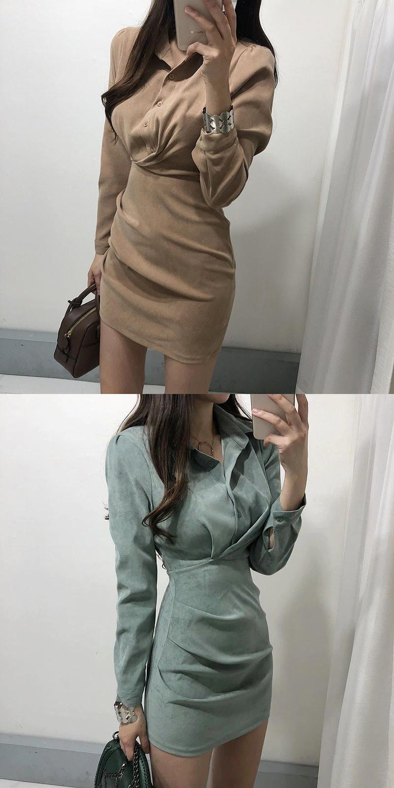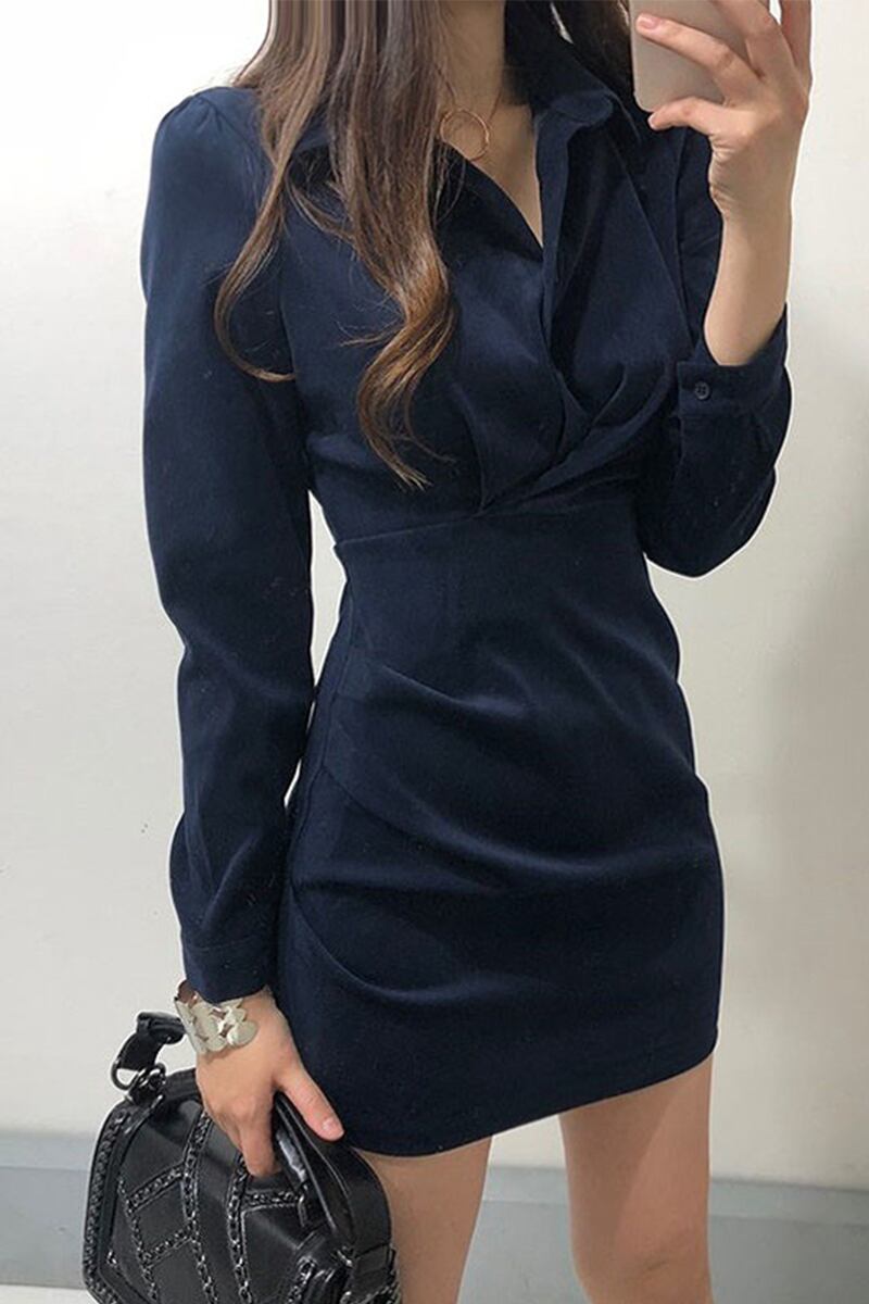 春スリム気質オールマッチミニターンダウン襟長袖ドレス女性ラップヒップレトロセクシーな Vestidos ロング スプリング 春物 asa39169528462