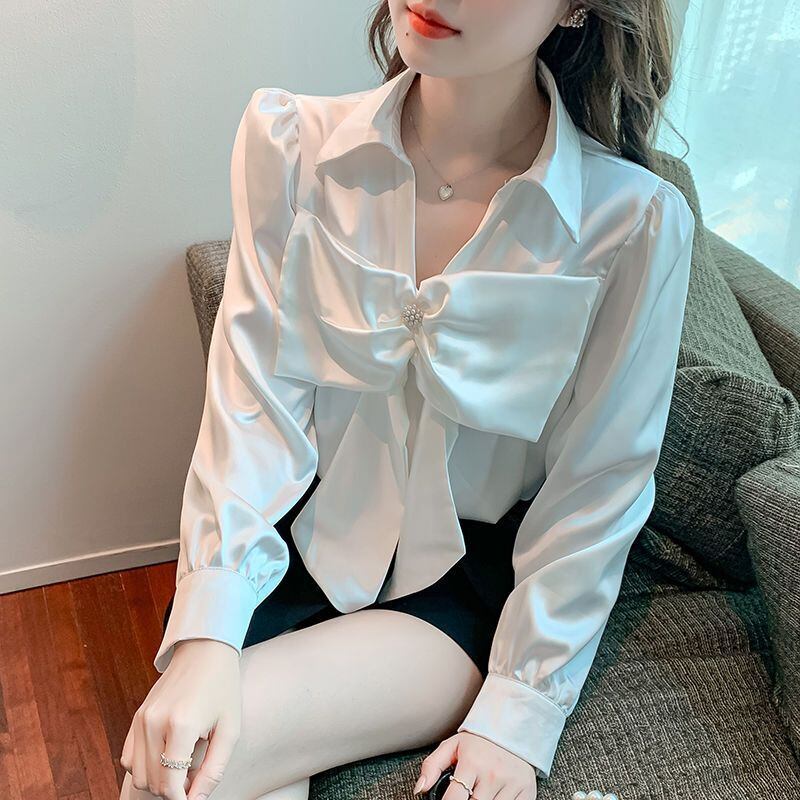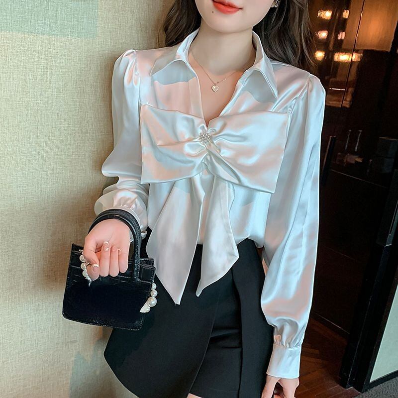 弓 OL シャツ トップス春ワイルド ホワイト シャツ女性パレス スタイル パフ シフォン ブラウス Roupas レース スプリング 春物 asa85512796430