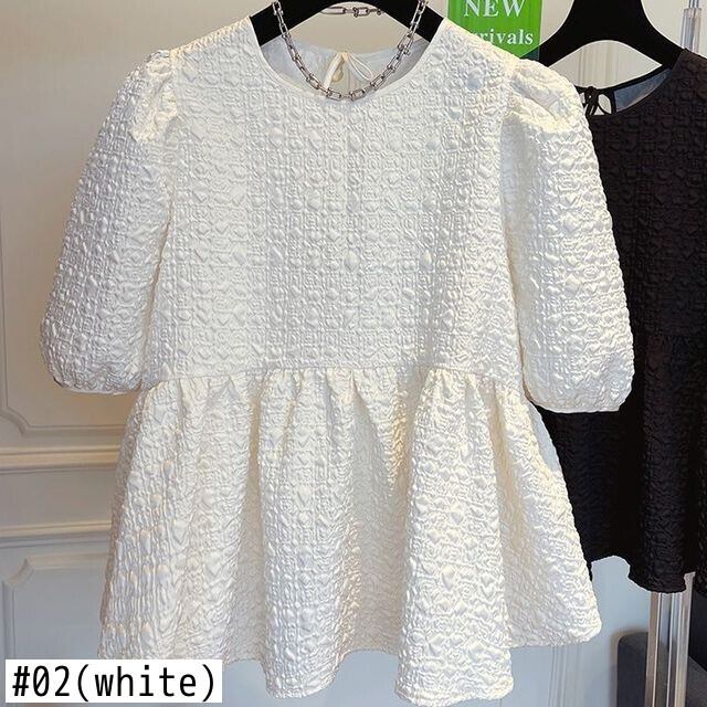 ルーズフリル裾パフスリーブプリーツシフォントップ女性夏半袖ドールシャツホワイトエレガンス ショート ハーフスリーブ エレガント サマー 夏物 asa36134525264