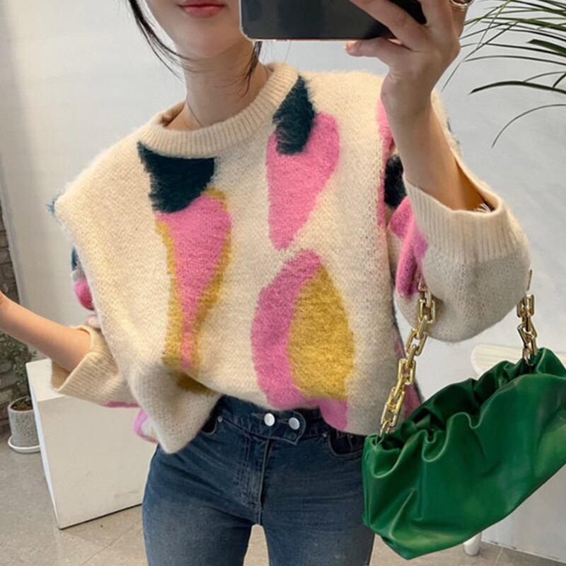 特大絞り染めセーター女性 O ネック厚い甘いコントラスト Y2k トップ長袖セータージャンパーニットセーター ロング 大人ガーリー スウィート キュート カジュアル Oネック asa15438621214