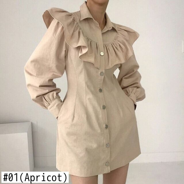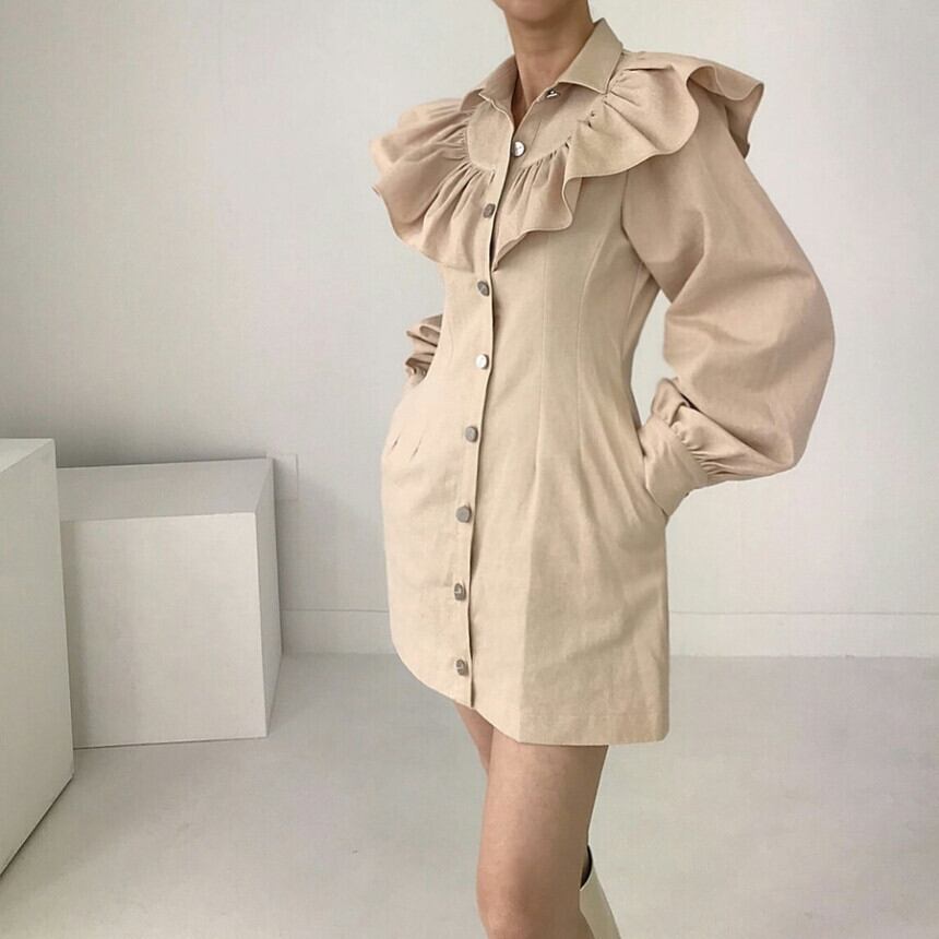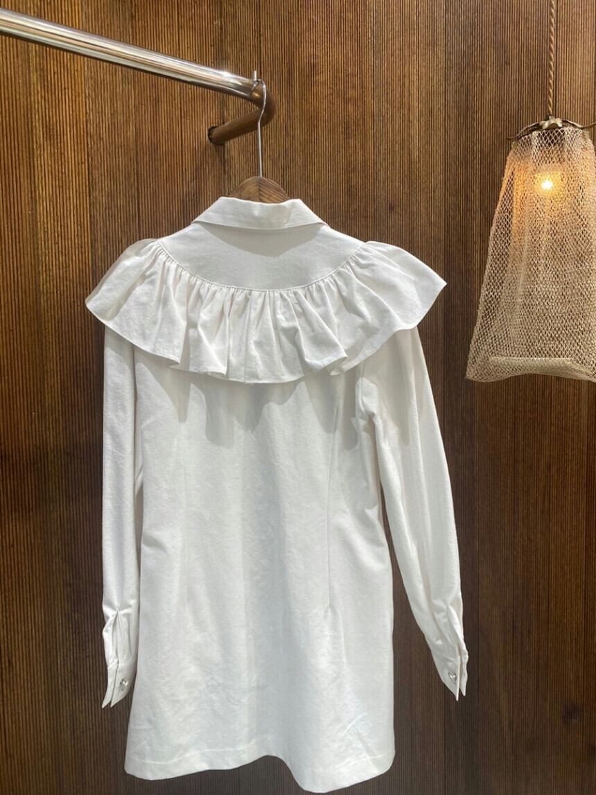 Fungusシングルブレストホワイトシャツドレス女性フリルポケット春Vestidosデシックなマキシドレス スプリング 春物 asa94906724307
