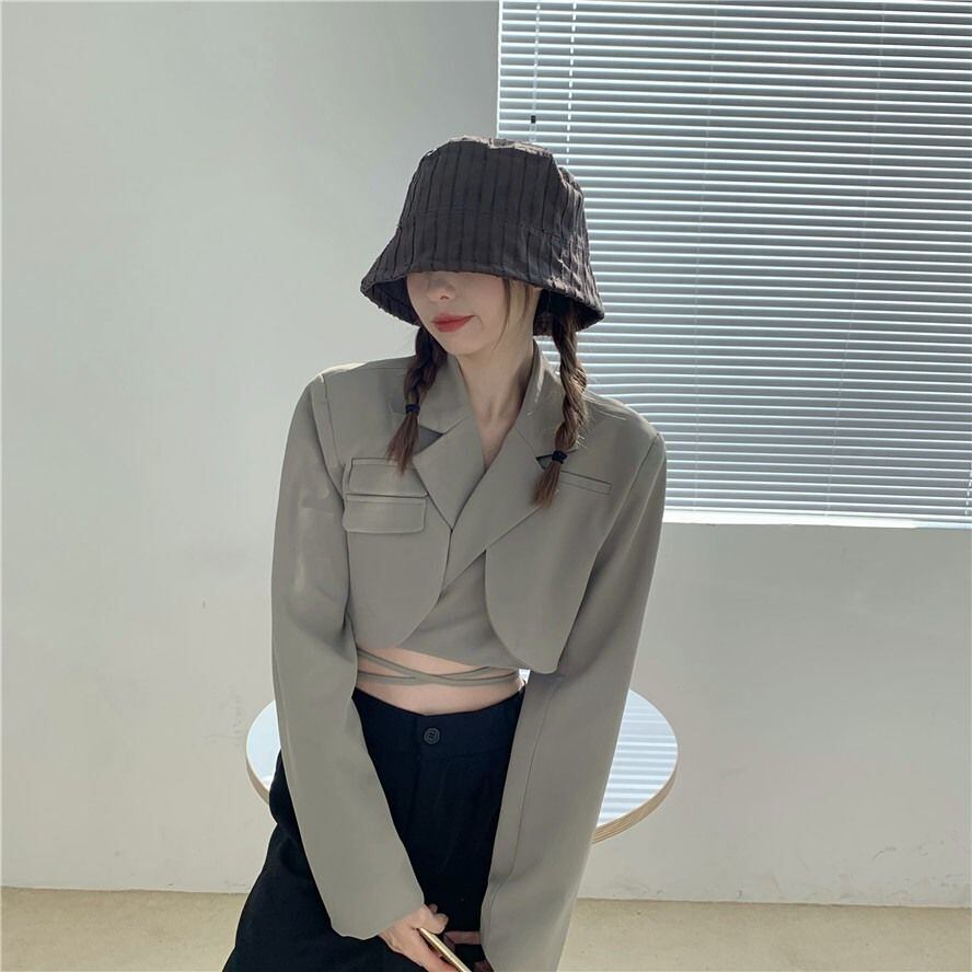 黒クロップドブレザーシックな野生のセクシーなトップスウエストスーツ包帯ブレザージャケット春女性シャツスリムコート ブラック スプリング 春物 asa42706498792