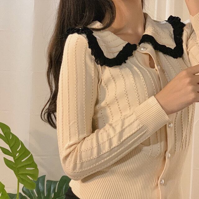 フレンチシックな甘いターンダウン襟カーディガンセーター女性シングルブレストスリム秋冬ニットボトムトップ野生 大人ガーリー スウィート キュート カジュアル オータム 秋物 ウィンター 冬物 asa24117473513