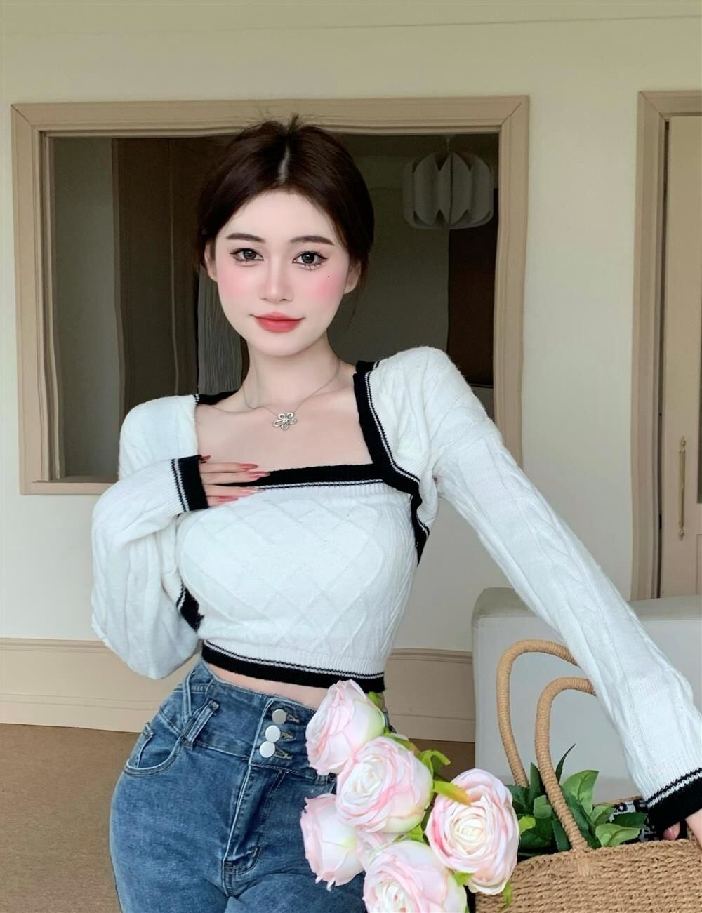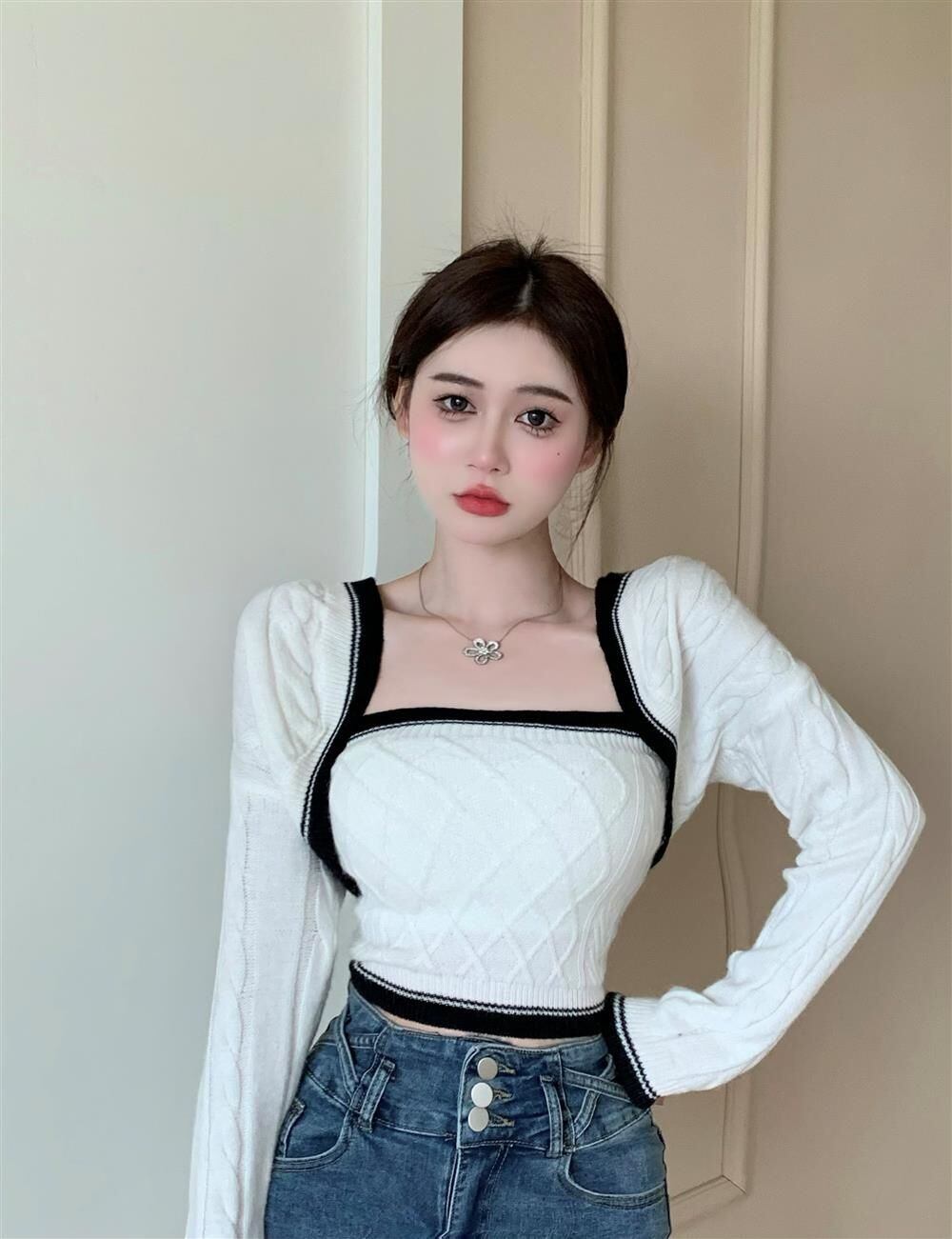 セクシーなクロップトップ ストラップレス キャミソール 2 点セット服 V ネック ホワイト ニット カーディガン ジャケット ツイスト セーター アーガイル ショール Vネック asa6670602901