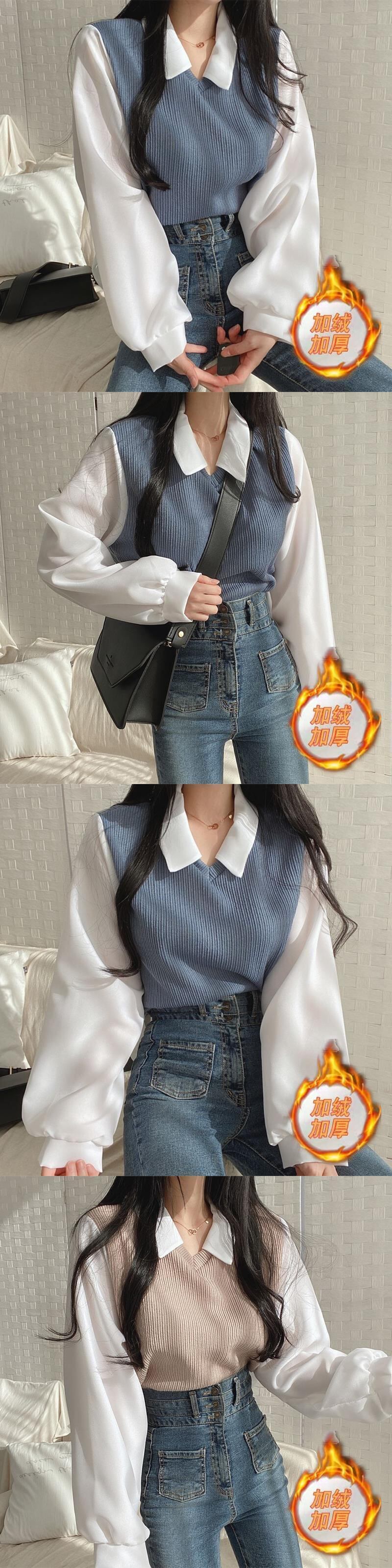 ルーズワイルド特大パーカーフリースフェイクツーピース Tシャツ Patckwork 学生シャツ女性ラペルトップパフシャツ asa66734563496
