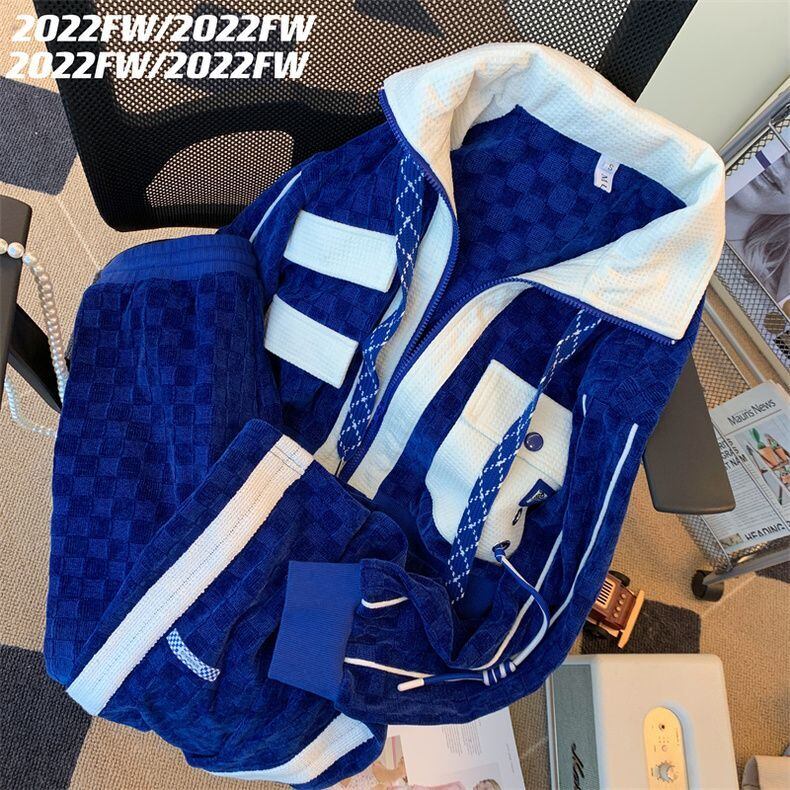 ブルーズボンスウェットパンツワイド脚パンツスーツ秋冬 2 点セット服チェッカーボードジャケットトレーナー女性 オータム 秋物 ウィンター 冬物 ワイドレッグ ワイドパンツ asa97329517574