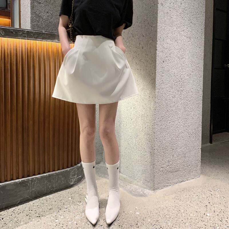 セクシーなウエストワイルド段 Faldas ペチコートショートふくらんポケット黒スカート女性ワイルド Y2k ホワイトスーツスカートワークスタイルシック ブラック asa84234417662