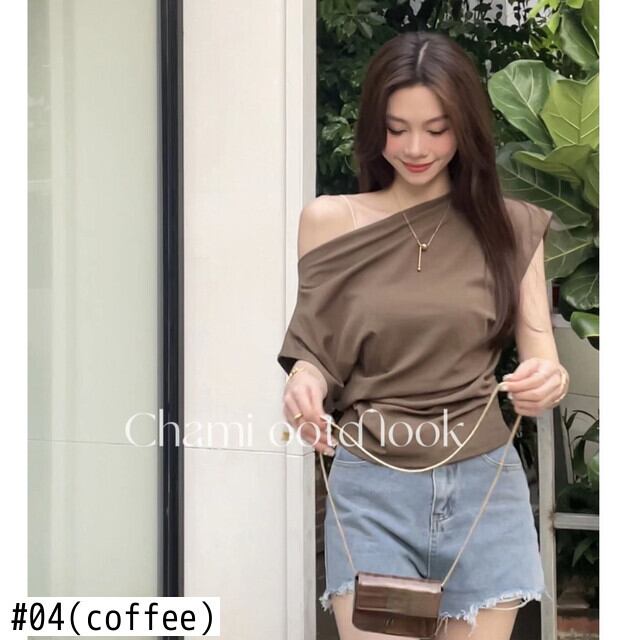 シャツ女性白斜め襟クロップトップスオフショルダー半袖 Tシャツレディワイルド OL プリーツ Tシャツ ショート ホワイト ハーフスリーブ asa98843437042
