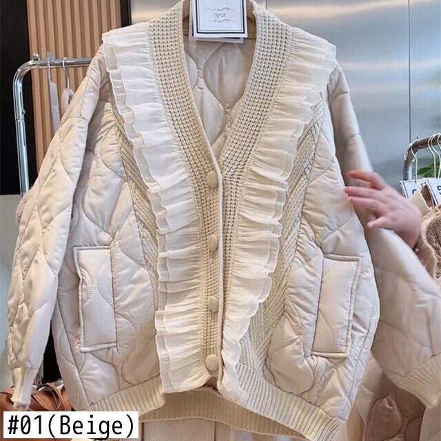 Chaquetas 冬のジャケット爆撃機 Jaqueta V フリルパッチワーク真菌アーガイルパーカー女性カーディガン厚いコート ウィンター 冬物 asa31617213465