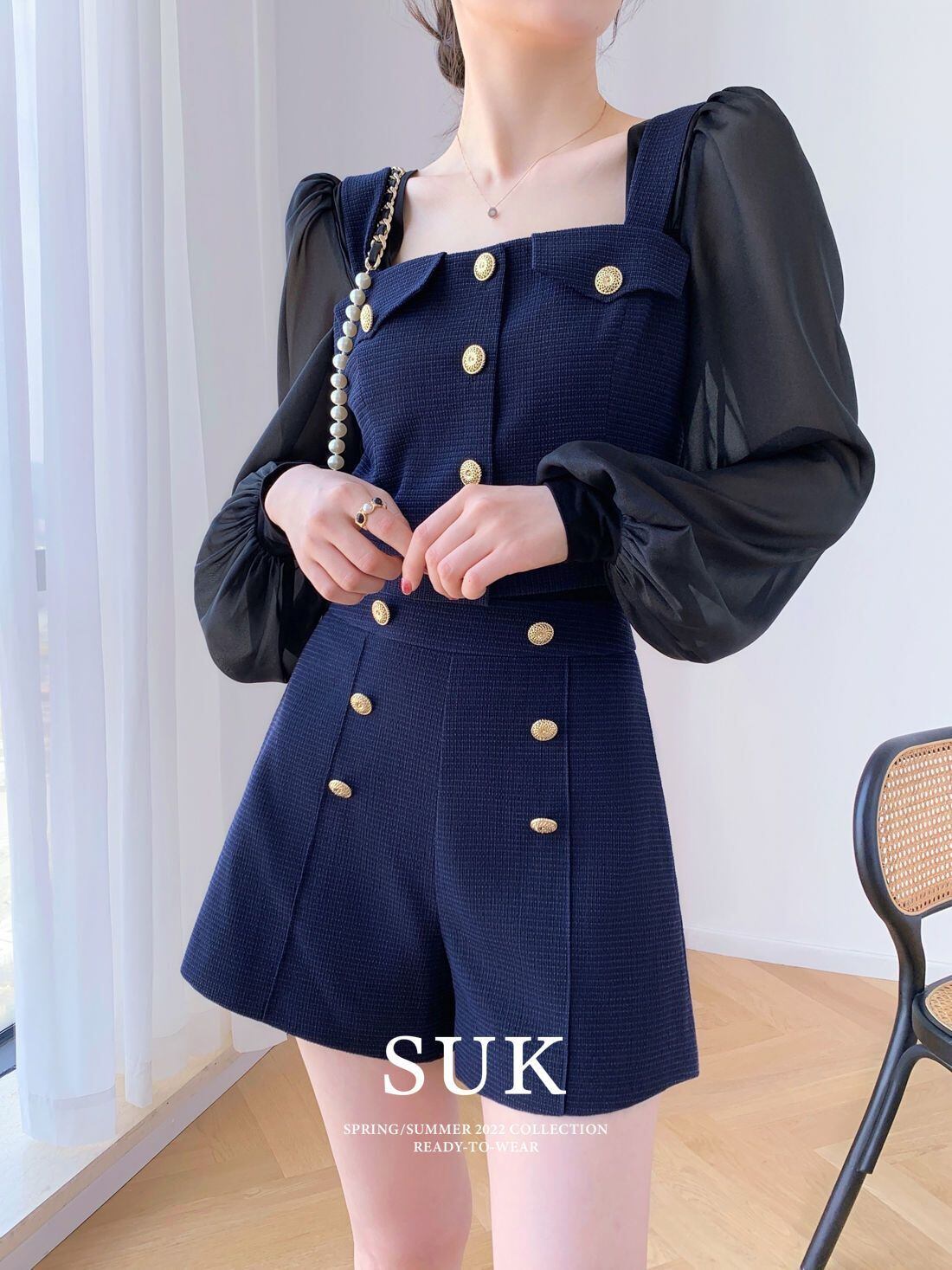 ワイドレッグショーツセットツーピースセットレディース衣装スクエアパフ長袖パースペクティブシャツオフィスレディブラウストップススリム ロング ブルマー ワイドパンツ スクウェア 会社 学校 通勤や通学にも asa57894794415