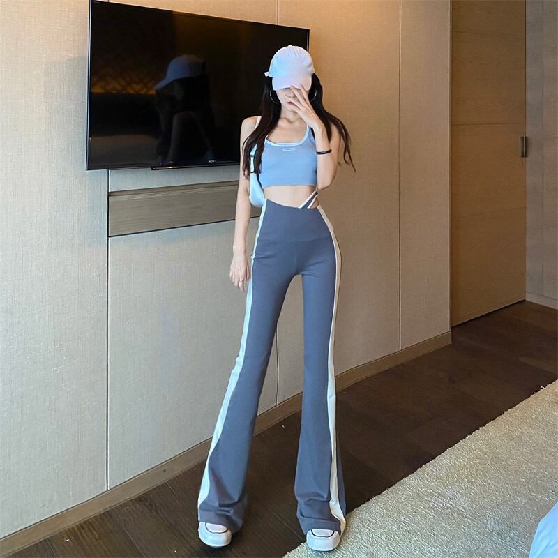 掃討弾性ブラックホワイトストライプスウェットパンツ女性 Y2k フレアパンツ Pantalones デベルボトムパンツ春 エラスティック 伸縮 スプリング 春物 asa43833698590