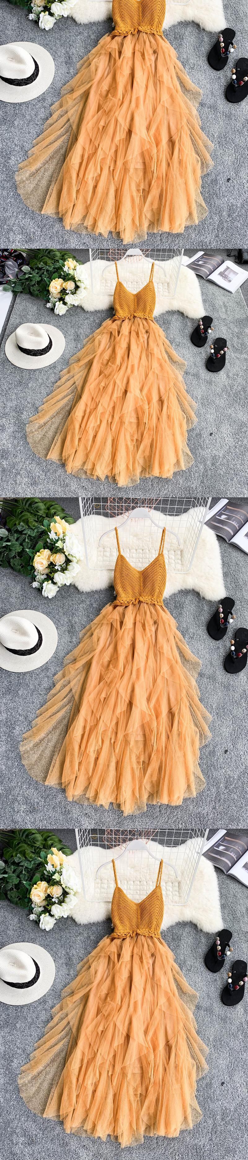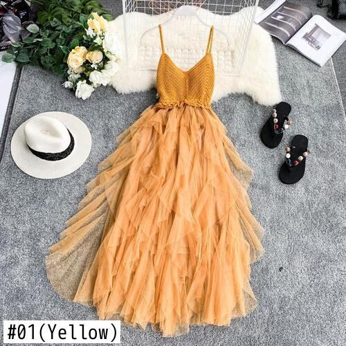 ニット V ネック スパゲッティ ストラップ ピンク ケーキ ドレス パーティー Vestidos デ ボーホー ドレス 不規則なレイヤード フリル メッシュ ローブ レッド Vネック asa46208106755