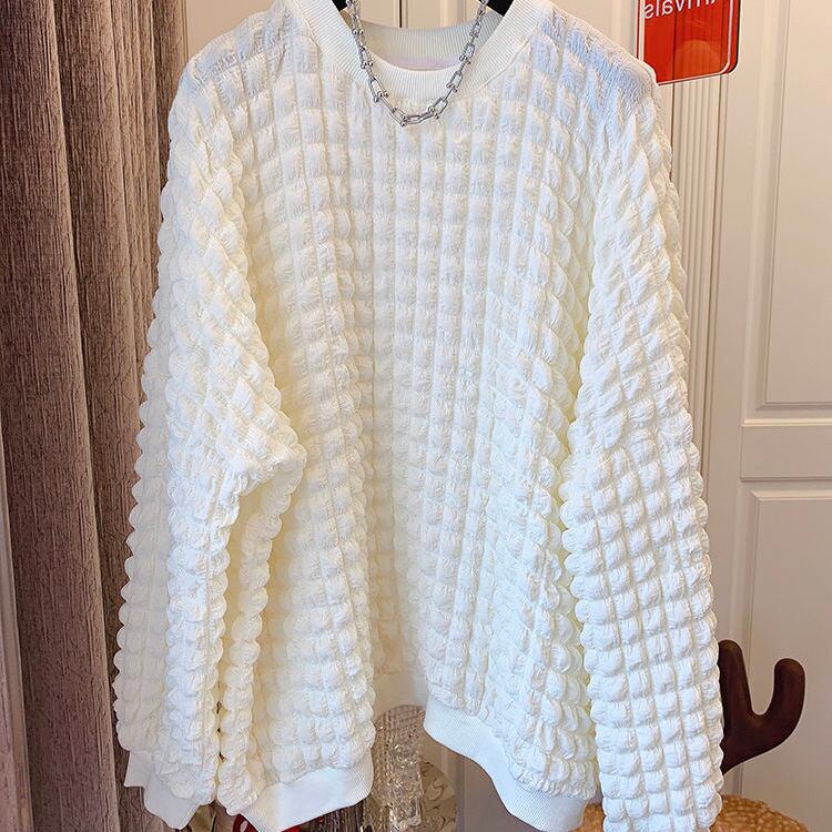 ルーズフォールド 3D パフスリーブチェック柄スウェット女性 O ネック黒トップス Sudaderas プルオーバーパーカー Tシャツ ブラック Oネック asa33832311464