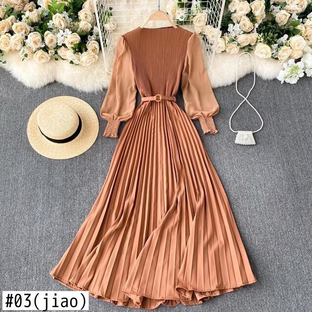 ドレス女性スリムウエスト A ラインパッチワークフェイク 2 ランタンスリーブロングプリーツドレス Vestidos ローブ Aライン asa51763460260