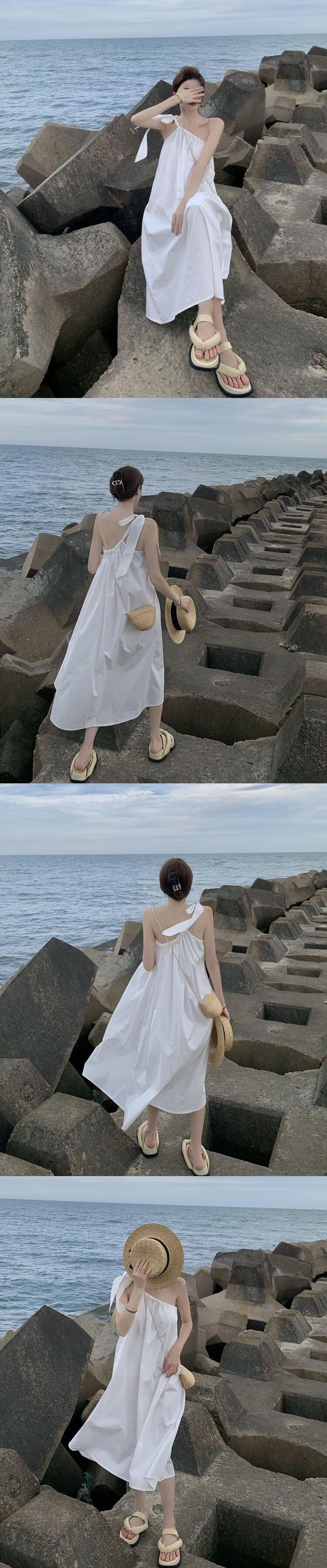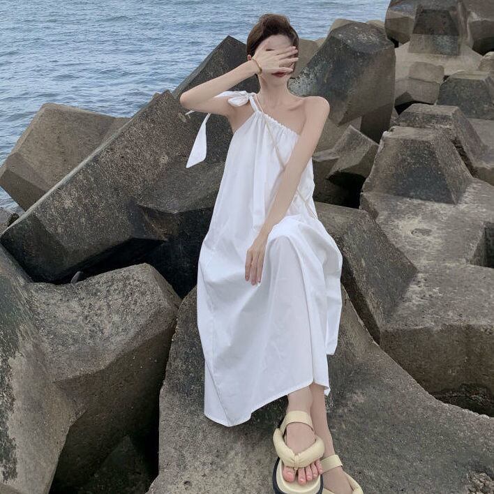 セクシーな白いスパゲッティストラップドレスロングサマービーチドレス Vestido ローブ A ラインワンショルダー女性ドレス ホワイト 夏物 Aライン asa12046809246