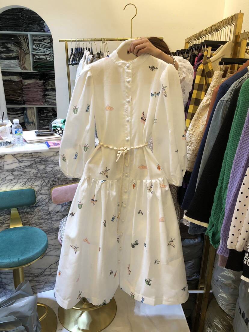 女性ドレス Vestidos プリント長袖蝶ドレス女性ルースレースアップウエスト甘いシャツボタン ロング 大人ガーリー スウィート キュート カジュアル asa61134409989