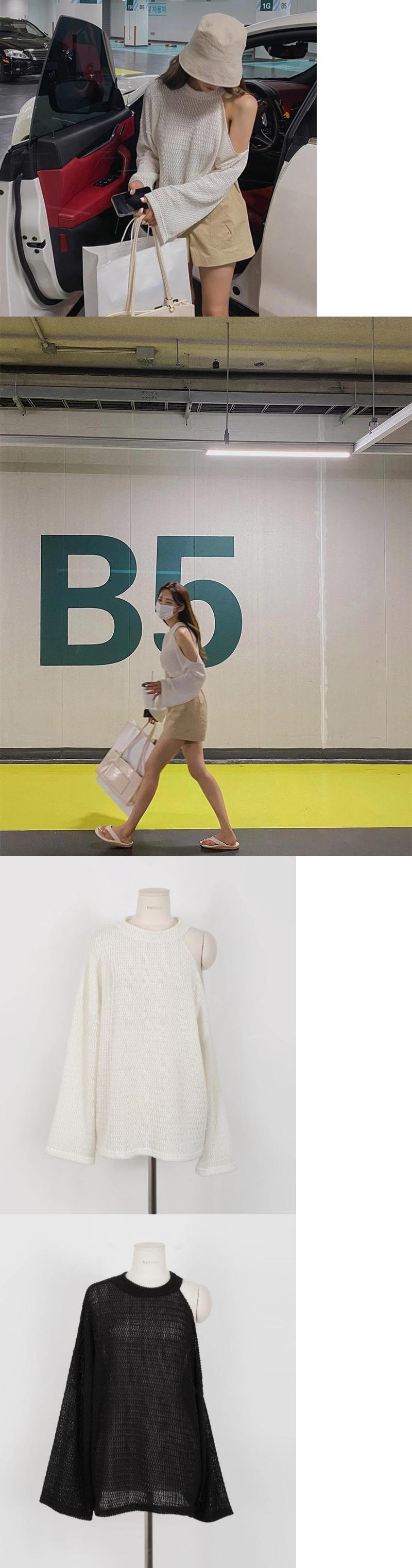 シャツ女性スリムセクシーなワンショルダールーズホルター中空薄型日焼け止めトップブラウス O ネック黒セーター女性ニット ブラック Oネック asa324370820