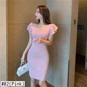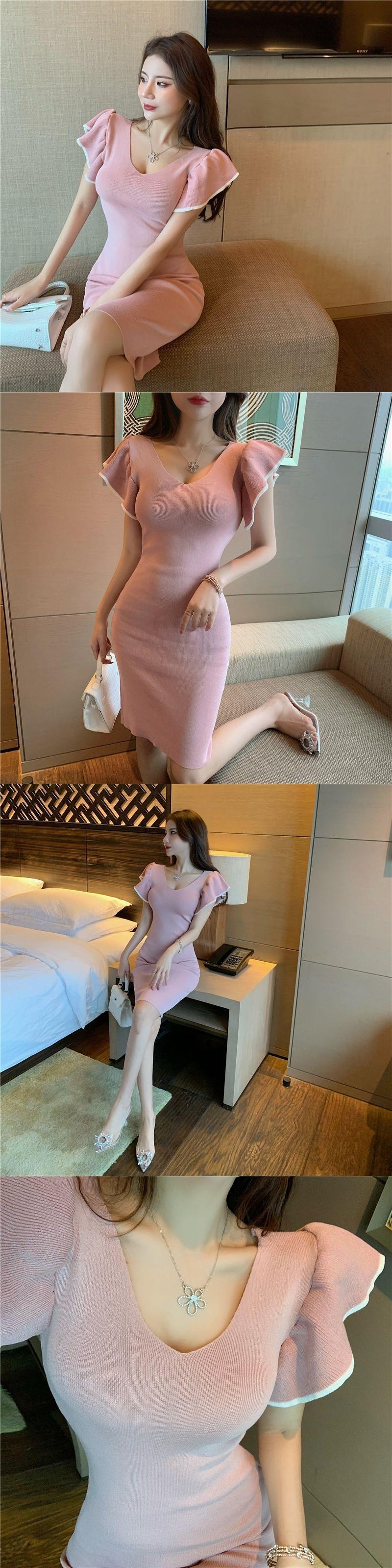ドレス女性スリム春ローブ Vestidos セクシーなニットスプリットフレアスリーブドレスヒップピンクセータードレスフライングショート黒 ブラック スプリング 春物 asa83380024010