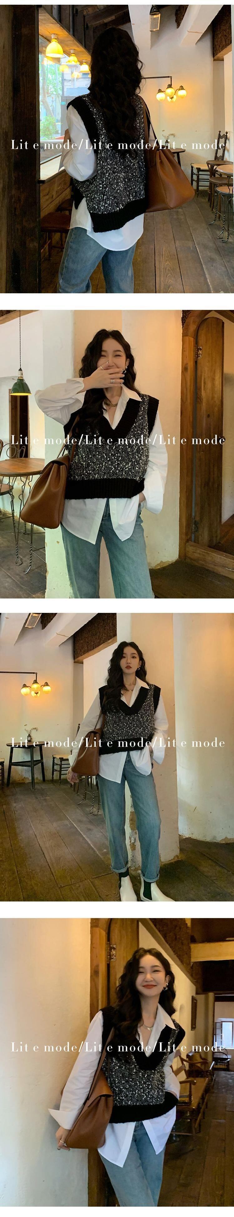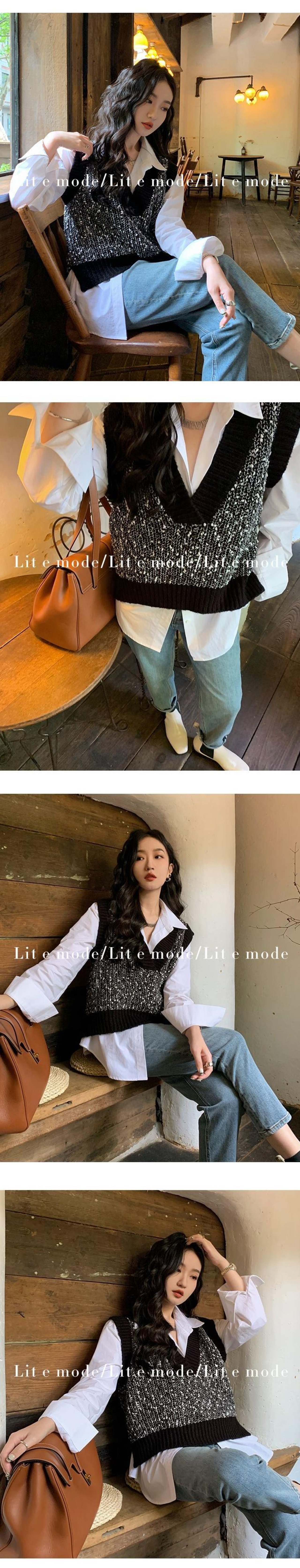 Chalecos スタイル ニット ベスト トップス Y2k V ネック セーター ベスト ノースリーブ アウター シャツ Vネック asa50639786881