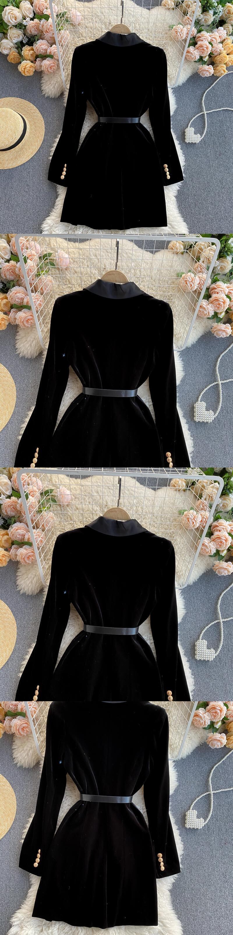 秋冬服ドレス女性ノッチダブルブレストブラックベルベットドレススリムスーツジャケットOL オータム 秋物 ウィンター 冬物 asa25368957550