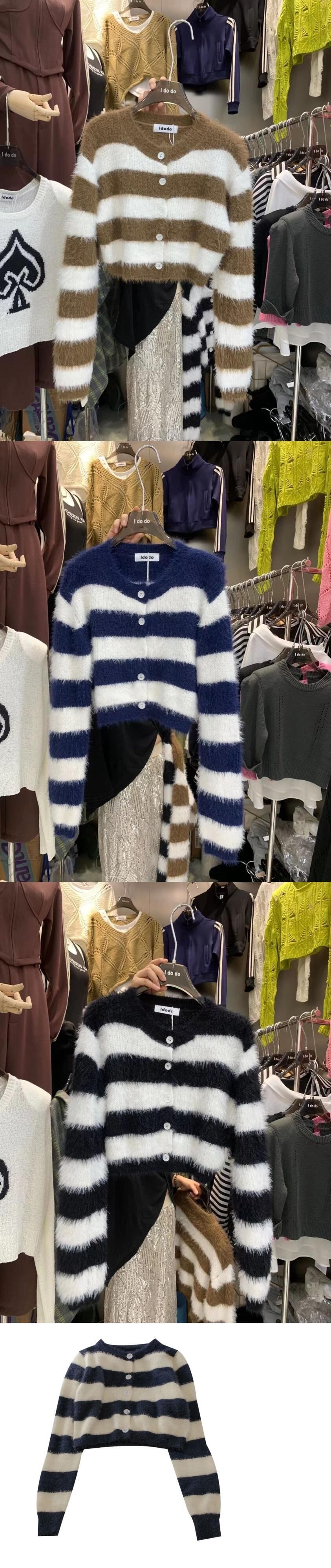 怠惰な O ネックルーズブラックストライプカーディガンクロップドスリムセーター女性秋ニットセーター野生コートシャツ Oネック asa45218162970