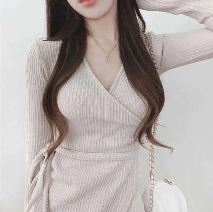 Vestidos クロス Vネック ワンピース ドレス レースアップ ウエストラップ ヒップ セクシー ミニ ブラック イレギュラー ニット ドレス ローブ asa65390861748