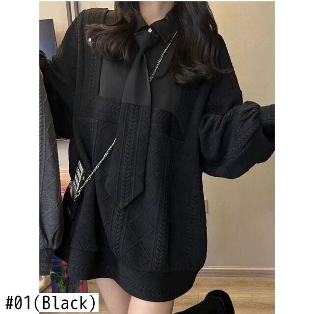 ラペルフェイクツーピースシャツスプライシンググレーツイストセーター Sudaderas ストリート特大パーカー女性 Ropa 黒スウェット ブラック asa48893138164