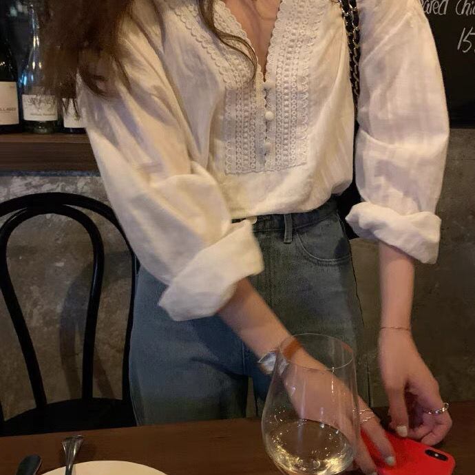 ルーズ V ネック白レースシャツ女性春トップスカミーサ Offlce レディブラウス女性シャツ ホワイト スプリング 春物 Vネック asa6371970984