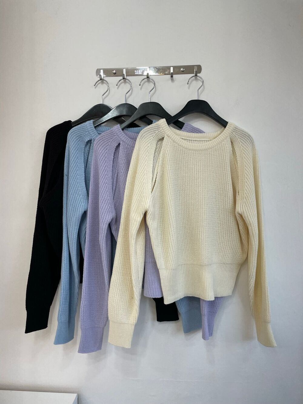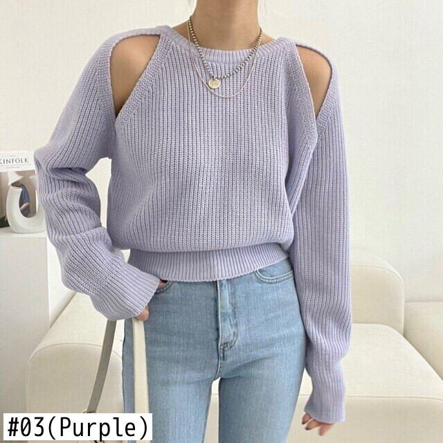 オフショルダーセータージャンパープルオーバーセーター女性優しいシックなニットトップ春黒シャツ ブラック スプリング 春物 asa7528885469