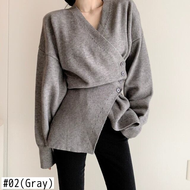 ジャンパー セーター サイド ボタン V ネック ウエスト グレー アシンメトリー セーター トップス プルオーバー ホワイト ニット セーター 服 Vネック asa2026683920
