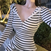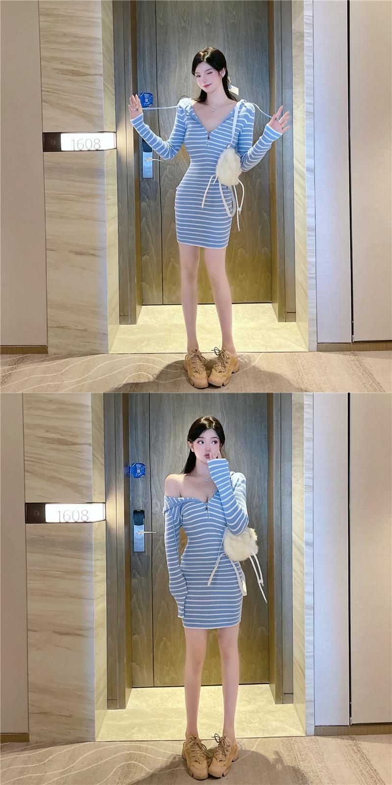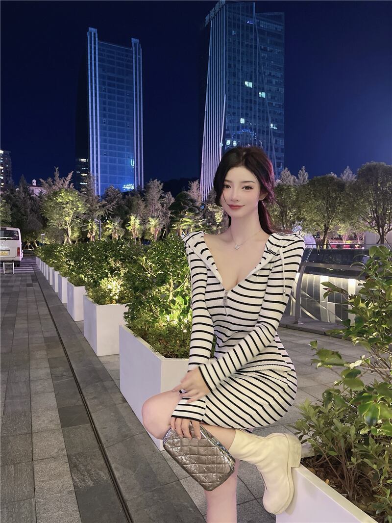 Vestido Feminino セクシーなラップヒップフード付きストライプドレスミニ秋長袖ジッパーパーカーニットローブ野生 ロング オータム 秋物 asa90447131195