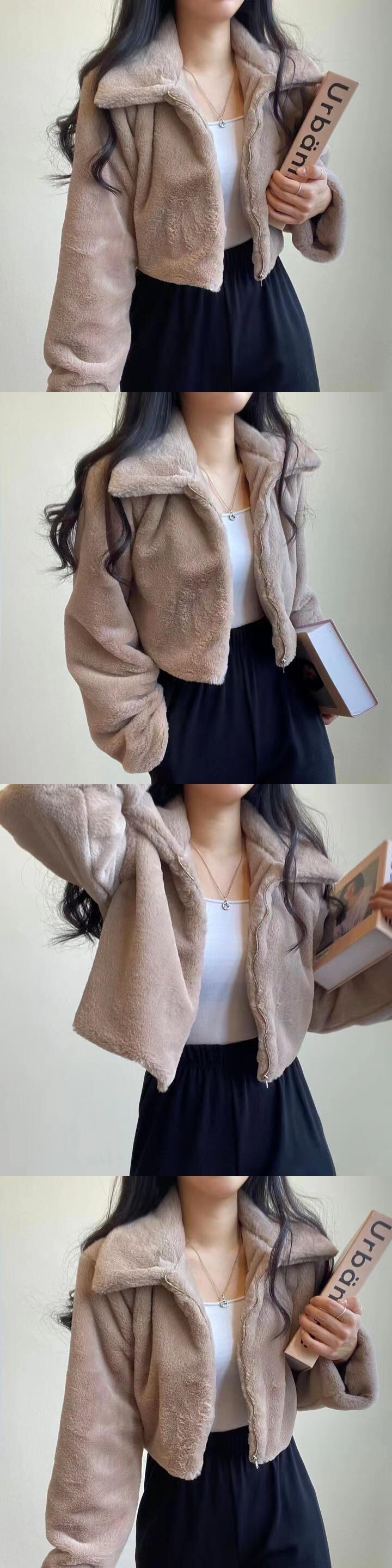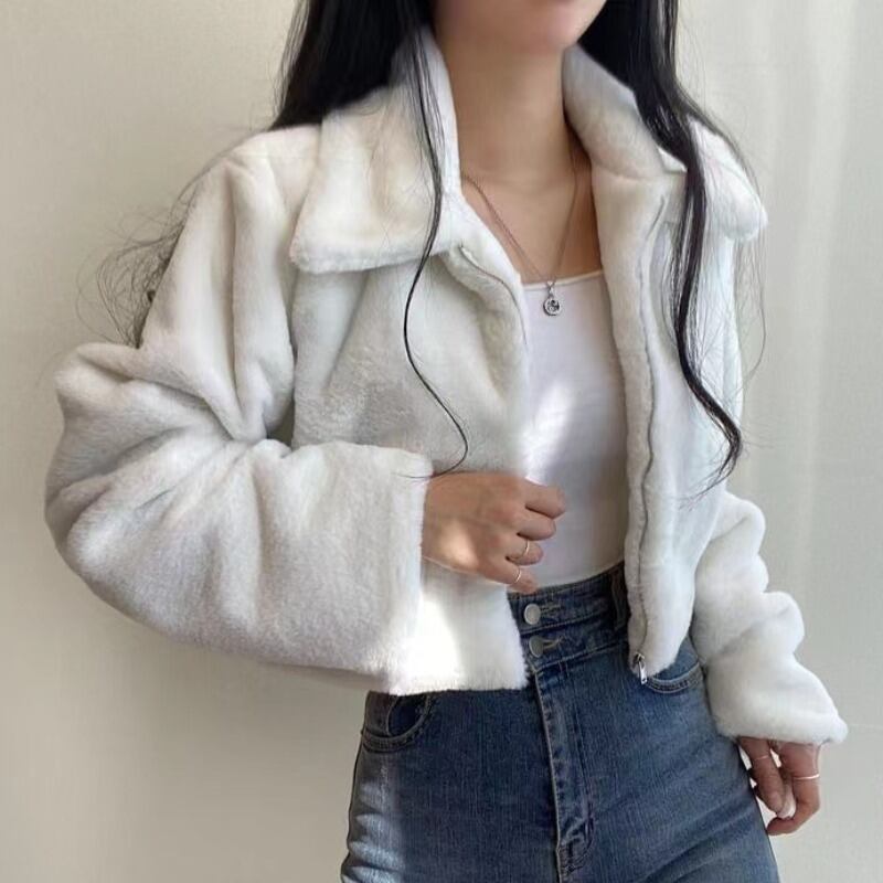 毛皮 & フェイクファーショートカーディガンジャケット女性ブラックホワイトカーキジップラペル Chaquetas フェイクファーコート Roupas s Chaquetas asa88447169345