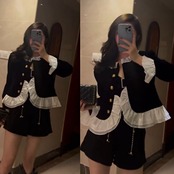 V プリーツ フリル ショート ブラック ベルベット コート秋の Chaquetas シャツ ジャケット女性 Jaqueta ラッフル オータム 秋物 asa93275899920