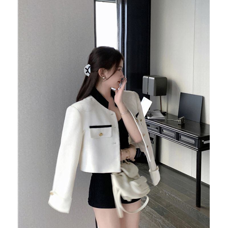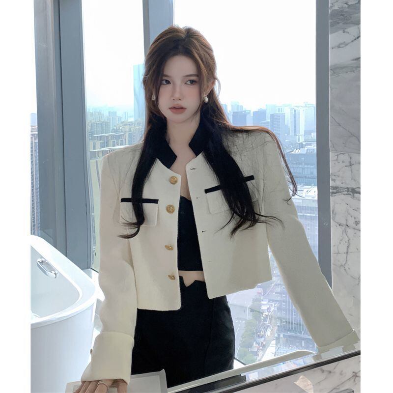 フレンチカラーコントラストスモールフレグランスコートJaqueta秋OネックChaquetasショートツイードジャケットスーツ オータム 秋物 asa89769494076