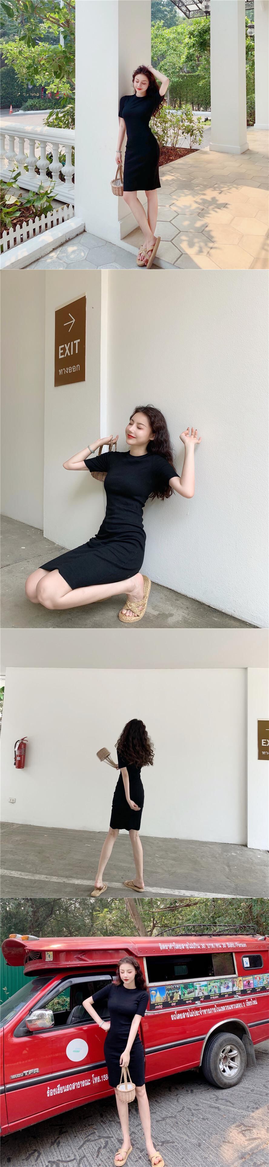 タイトな O ネックラップヒップ半袖 Tシャツドレス女性黒野生スリムローブ春 Vestidos デソリッドミニドレス ショート ブラック ハーフスリーブ スプリング 春物 Oネック ソリッドカラー asa44572171095