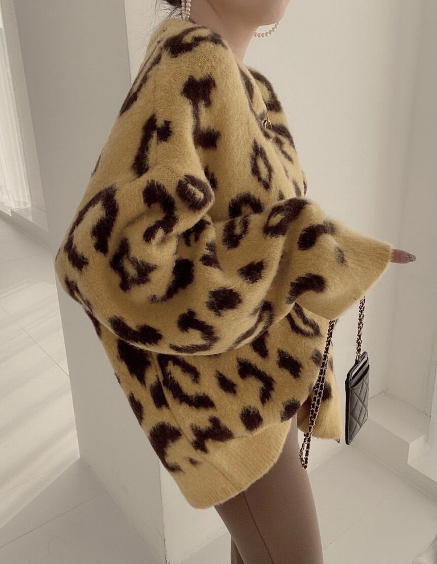 OネックジャカードヒョウセータープリントルーズY2k服妖精グランジsuetersプルオーバーセーター女性ニットコートトップス asa87175309939