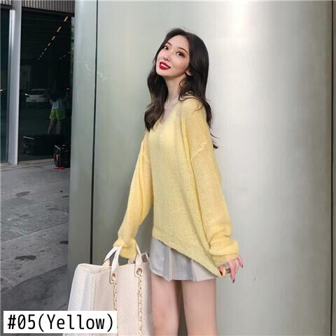 中空薄型日焼け止めトップ V ネック中空黒モヘアセーター女性ニットルーズブラウスシャツ女性の視点セーター ブラック Vネック asa73011097738