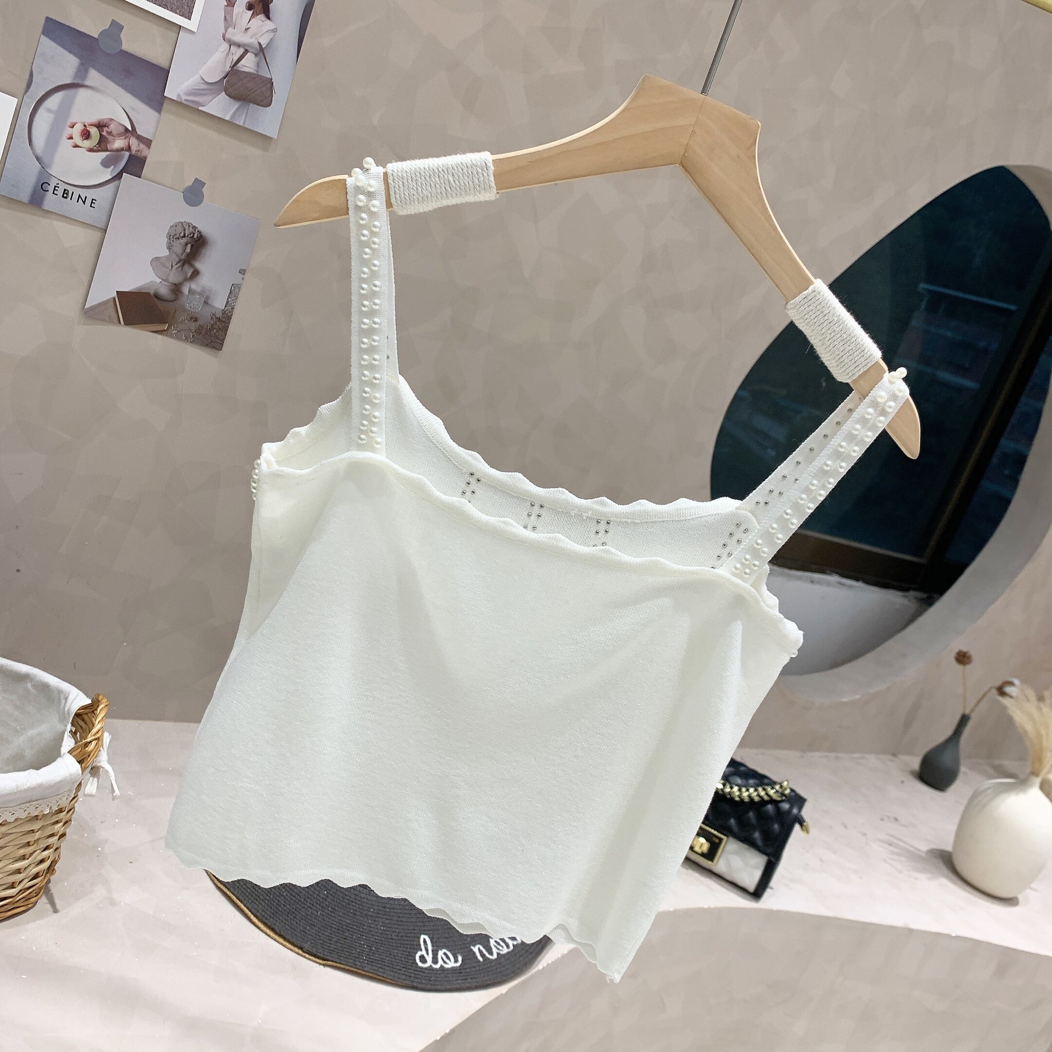 セクシーなホワイトパールクロップトップス生き抜くストラップレスキャミソールニットタンク Ropa スリムシャツ女性の夏のトップス & Tシャツ サマー 夏物 真珠 asa7463629197