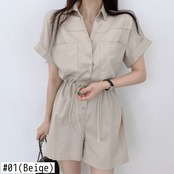 ルーズ巾着ラペルシングルブレストジャンプスーツ女性ワイドレッグショーツボディスーツロンパースロンパース & 女性 ショート 半袖 ハーフスリーブ ブルマー ワイドパンツ asa161056815