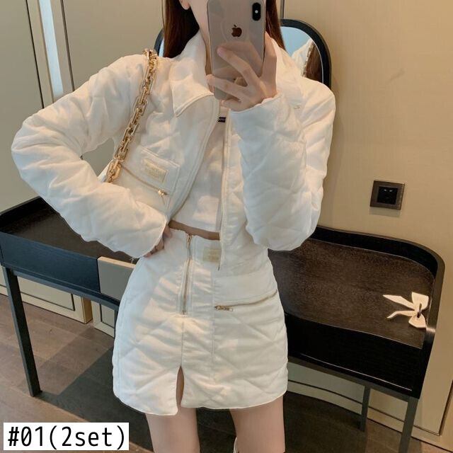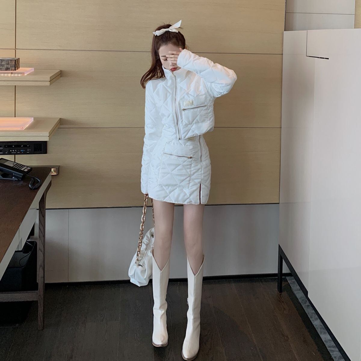 ターンダウン襟パーカージャケットアーガイルコートミニ白不規則なスカート 2 点セットレディース衣装秋冬服 ホワイト オータム 秋物 ウィンター 冬物 asa65427529128