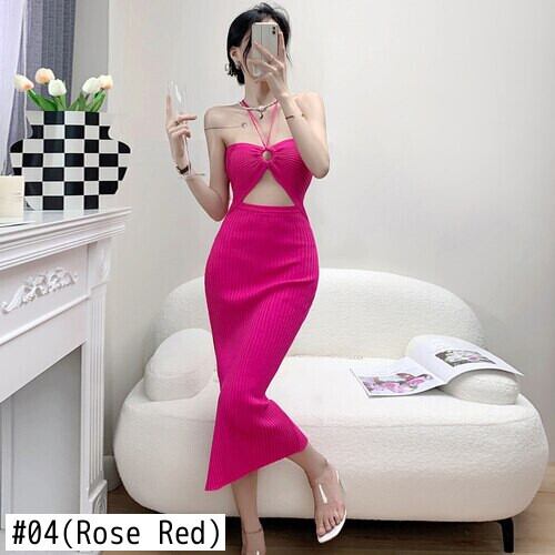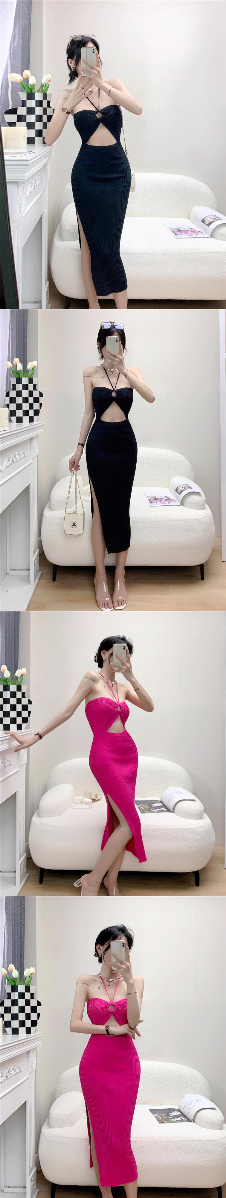ヒップ スリム ウエスト オフショルダー ビーチ パーティー ミディ ロング セクシー ホルター カットアウト ストラップレス ドレス ボディコイ Vestidos ニット スリムヒップ asa7844570570
